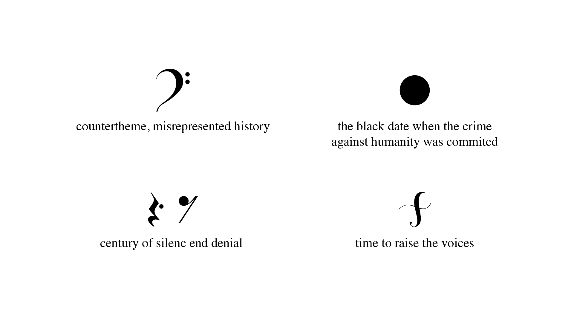 This is a project that concerns every single Armenian, including each member of our team. So our challenge was to create a storytelling and visual identity that will encourage people to never ever silently conform to the crimes committed against humanity. If certain people create weapons to destroy, many talented people have put their lives to create music as one of the highest forms of art to cure, bring happiness and joy. We confronted the music as a cultural weapon of mass creation to weapons of mass destruction. But the music itself could not break through the dark, it needed devoted ambassadors, people enlightened with a good purpose, a big mission to spread humanity and human values. Missionaries of Enlightenment, that’s how we named all those talented and devoted musicians and initiative leaders that got together to carry this idea to the world. They speak on behalf of a new generation: a generation of leaders, creators, and innovators, awaken the minds and the souls of people worldwide. Orchestra is planning to start a world tour from Yerevan, Armenia, and continue to the leading countries, which have not recognized the Armenian Genocide yet, perform for various nations and make voices of all of us heard: no nation on our planet should be forced to see massacres, war or violence. The logotype became the keeper of this brand idea. Our art team did their best to tell the history of the XX century through musical symbols integrated into figures: a black spot is a period in history when the crime against humanity was committed, then came a decade of silence and denying the crimes depicted in the pause sign, and the forte sign, to indicate that it is time to raise our voices in defense of justice. This idea of music confronting the destructive weapons was gently incorporated into communication materials where a variety of weapons turned into musical instruments were visualized, symbolizing the prevention of violence through the healing power of music.