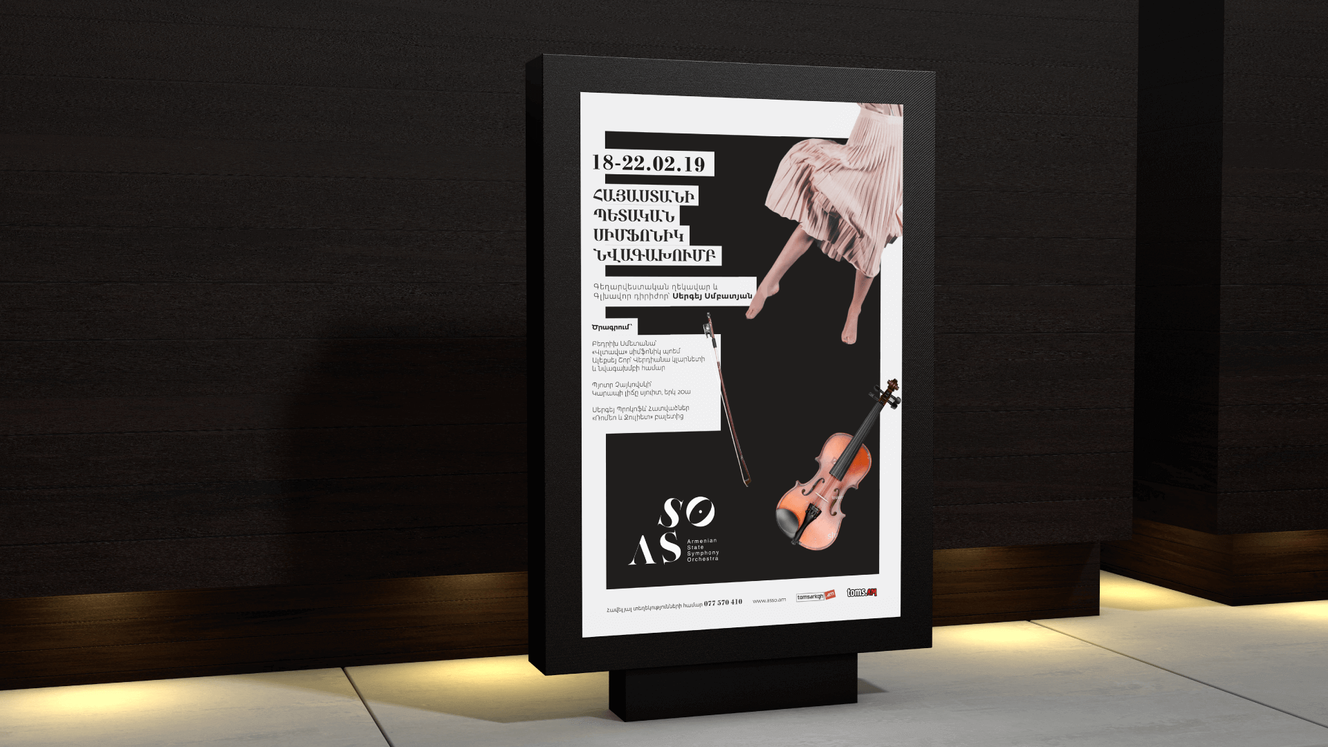 ASSO branding project requesting new brand ideology and visual identity was another step in our long lasting fruitful partnership with SYOA. With all possible inspiration, sense of responsibility and enthusiasm we started to shape this biography with a challenge to create a brand new story for our beloved and talented orchestra.This is one of those cases when it is essential for brand ideology to fully and utmost reflect the core values of brand owners otherwise it can never live long. We went on researching, listening, visiting rehearsals, concerts, implementing cabinet research of archive files, photos and audios.Features that always distinguished the ASSO and brought international reputation are orchestral virtuosity, the emotion, young spirit, determination, visionary talented people united around a true devoted leader sharing the same strive for success. All these makes the way they approach each concert, undertake innovative projects and implement with a signature ease and professionalism.Sergey Smbatyan was always the inspiration, the devoted keeper, the soul of the orchestra. His approach, personal qualities and kind heart reflected in high end professionalism always shaped the orchestra as a living creation.Driven by an unwavering belief in the power of music to heal, unite, and inspire he puts so much emotion into his conduction that each time reviewing the recordings we got the feeling he is about to fly, going up and down on his toes.