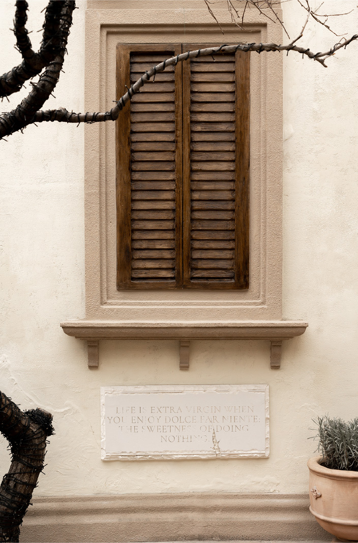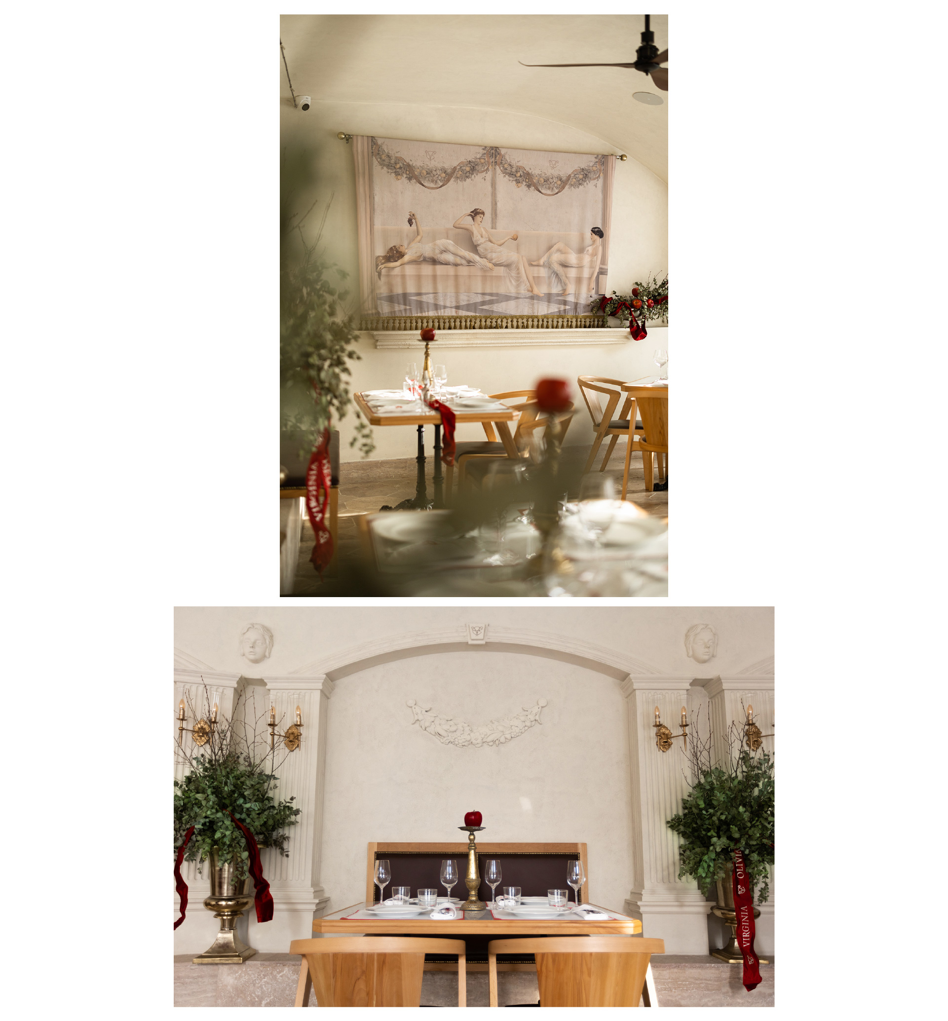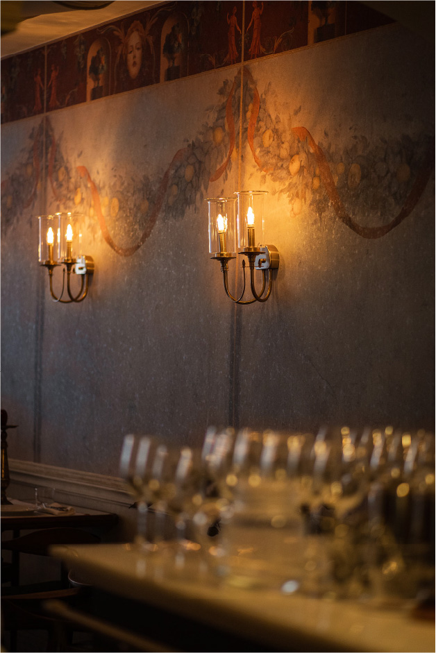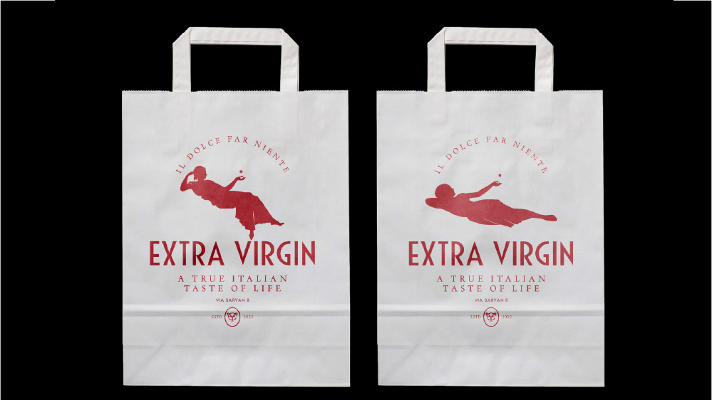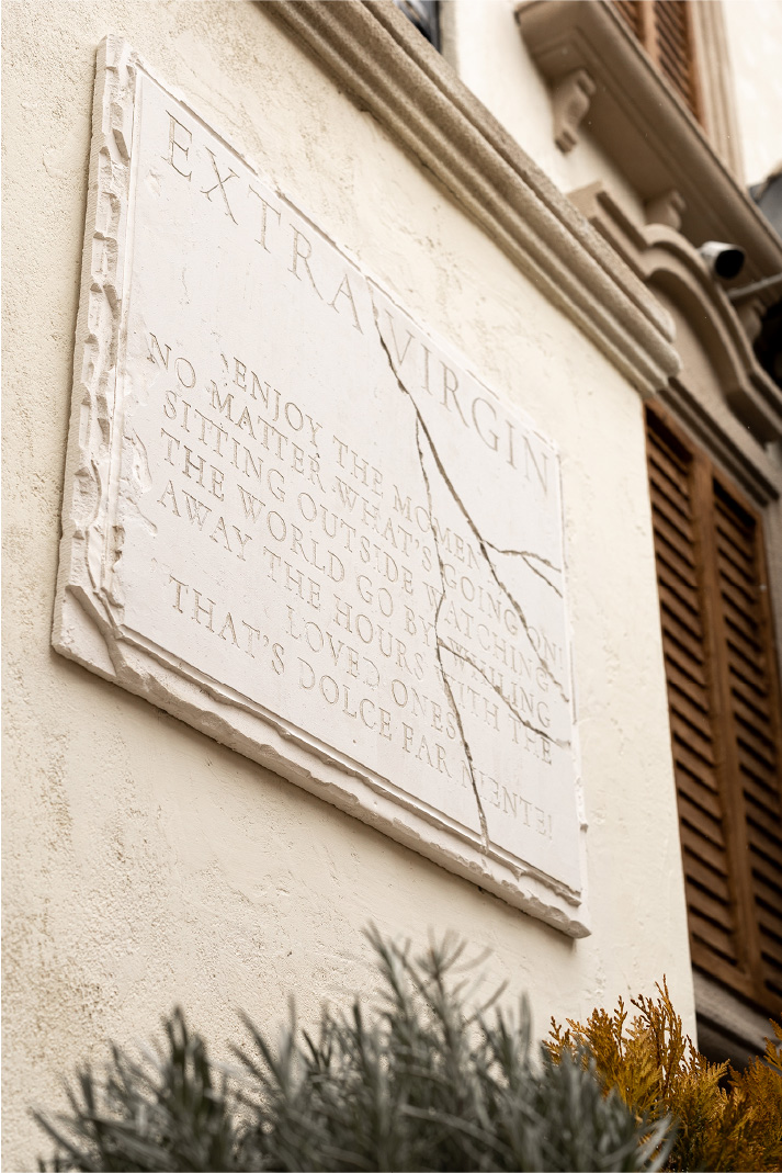 To contrast the business of the downtown and use the location of the restaurant to its advantage we turned to the truly Italian idea of “dolce far niente” (the sweetness of doing nothing). A way of life or a way to find yourself in a moment, away from the noise, slow, secluded and utterly delightful. The concept became alive in the restaurant’s menu, interiors, social media communications and name – “Extra Virgin”, personified by Virgin Virginia and three Graces. “Extra Virgin” combines the traditional Italian art and architecture, playfulness of the experience with raw culinary traditions of Tuscany. Everything here is extra but nothing is too much, because it is pure and intimate.