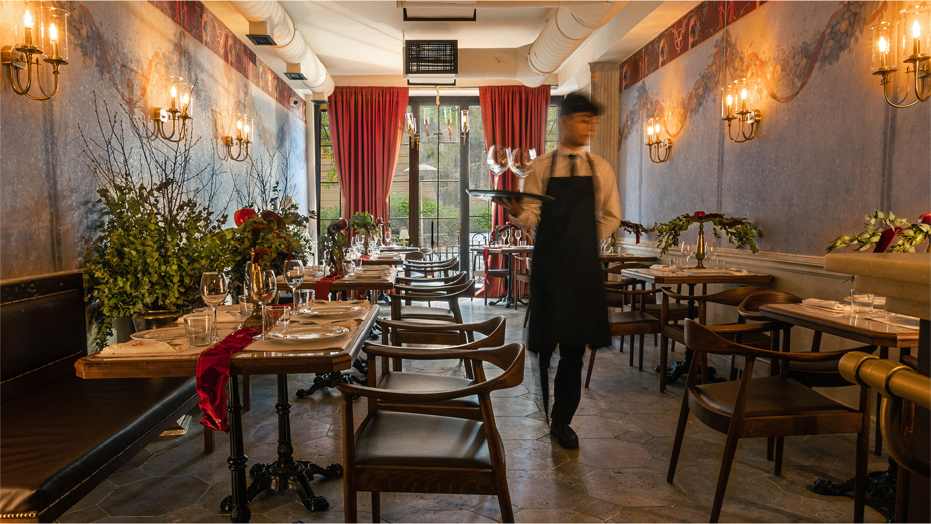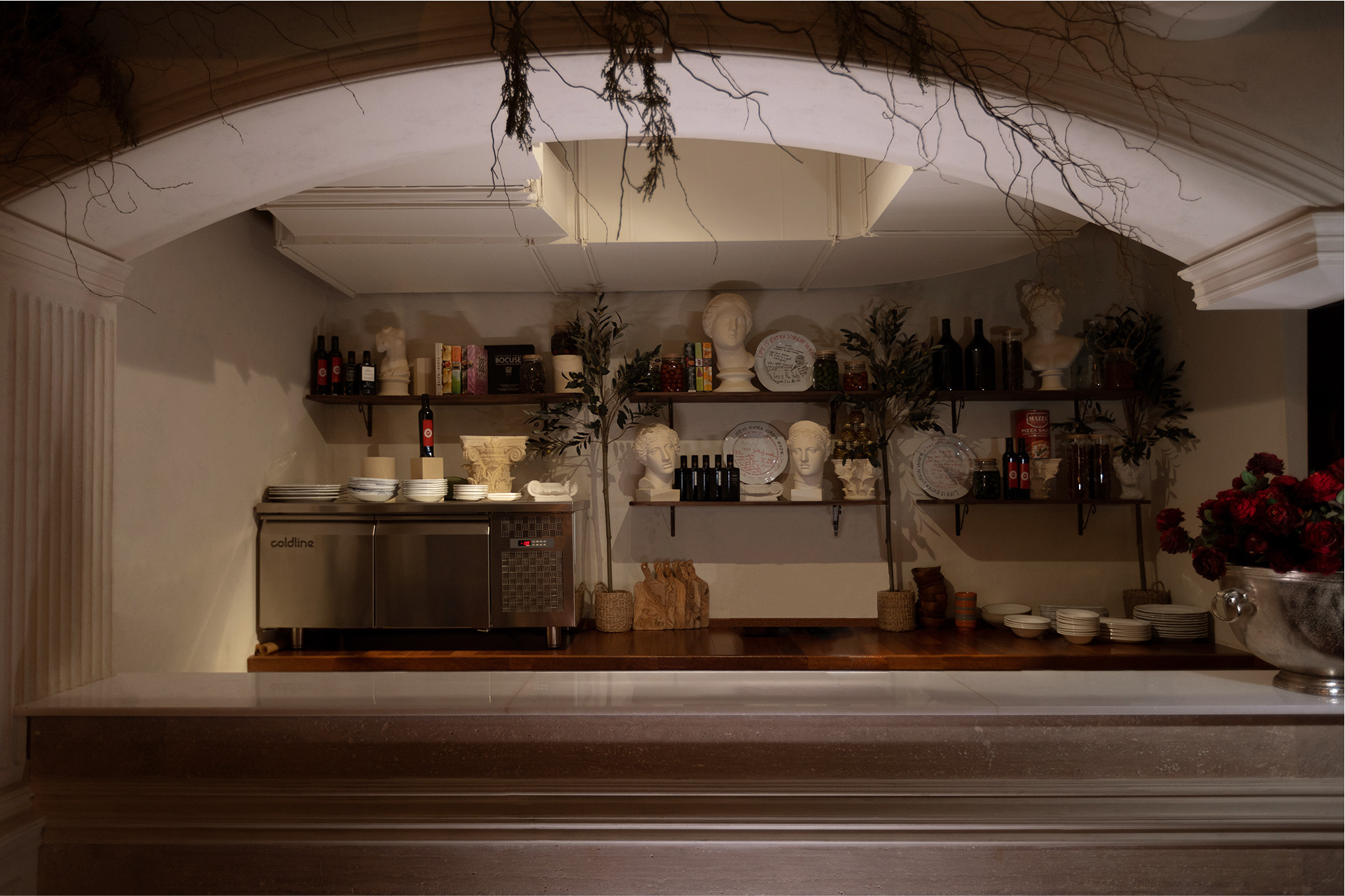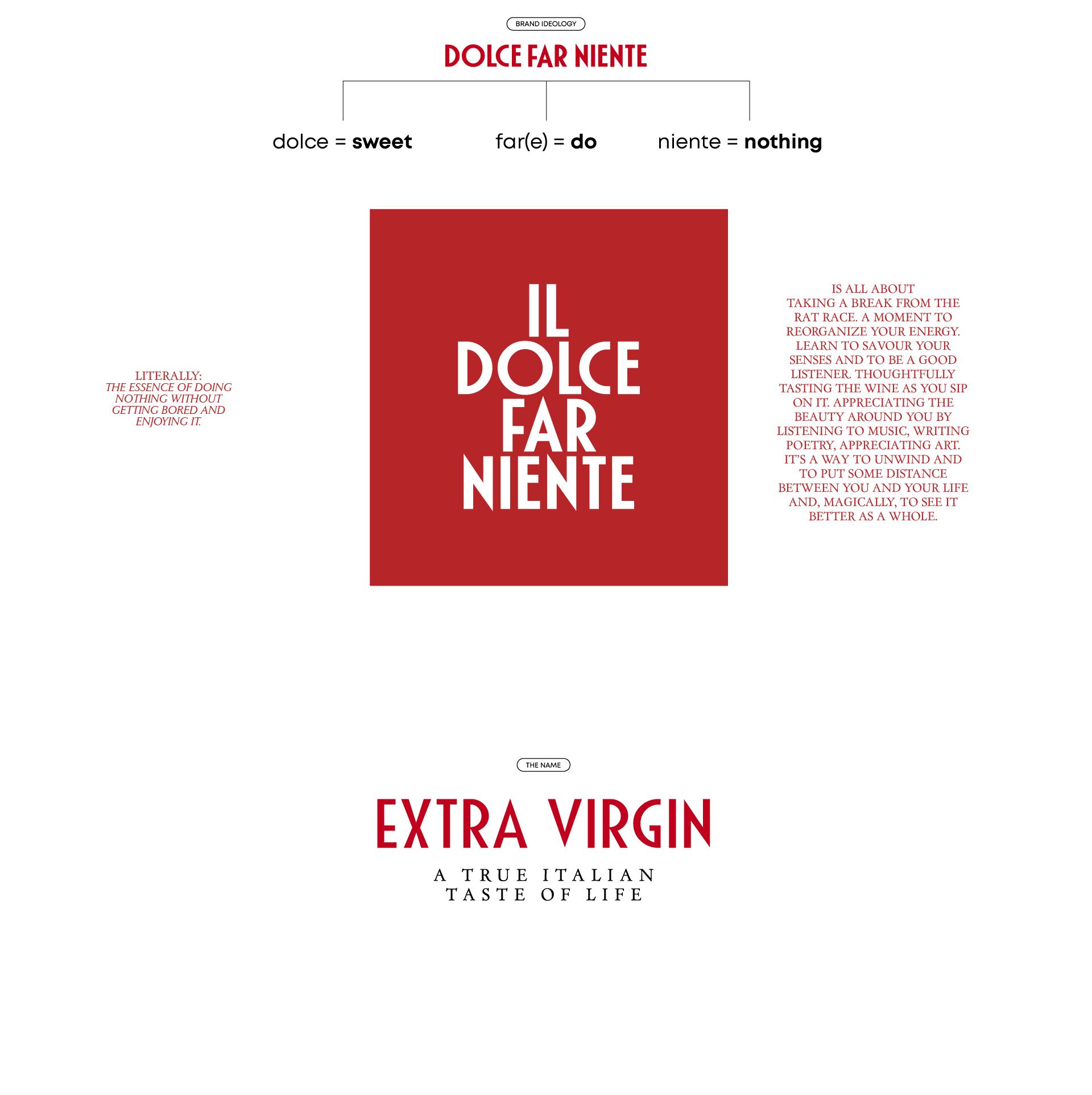To contrast the business of the downtown and use the location of the restaurant to its advantage we turned to the truly Italian idea of “dolce far niente” (the sweetness of doing nothing). A way of life or a way to find yourself in a moment, away from the noise, slow, secluded and utterly delightful. The concept became alive in the restaurant’s menu, interiors, social media communications and name – “Extra Virgin”, personified by Virgin Virginia and three Graces. “Extra Virgin” combines the traditional Italian art and architecture, playfulness of the experience with raw culinary traditions of Tuscany. Everything here is extra but nothing is too much, because it is pure and intimate.