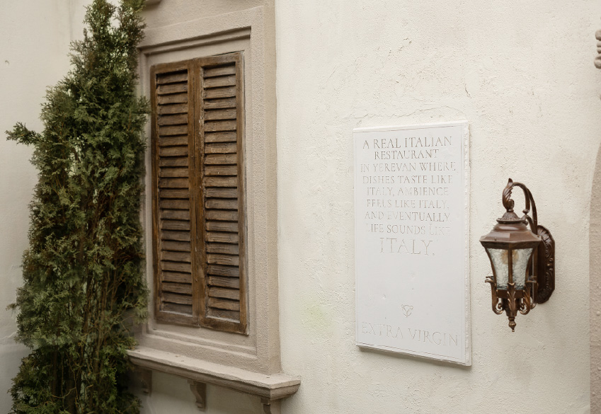 Extra Virgin is an authentic Tuscan restaurant in Yerevan, known for its distinctive culinary offerings. Playful, somewhat hidden and highly atmospheric, the restaurant emphasizes fresh, simple ingredients, traditional Italian cuisine and relaxed Mediterranean ambiance.