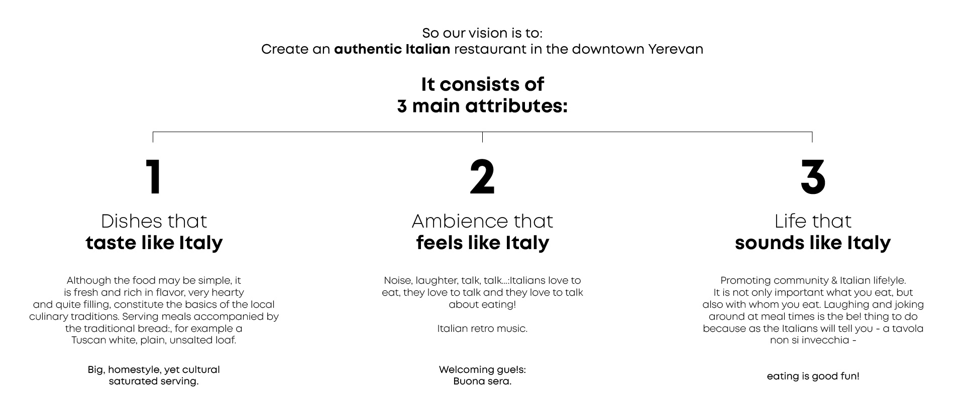 We were tasked with the development of a concept for an authentic Tuscan restaurant in the heart of Yerevan. The location of the restaurant was somewhat secluded, yet accessible from a busy Saryan street, filled to the brim with restaurants and cafes. This place was supposed to be the hidden gem of the street, for those who “know”.