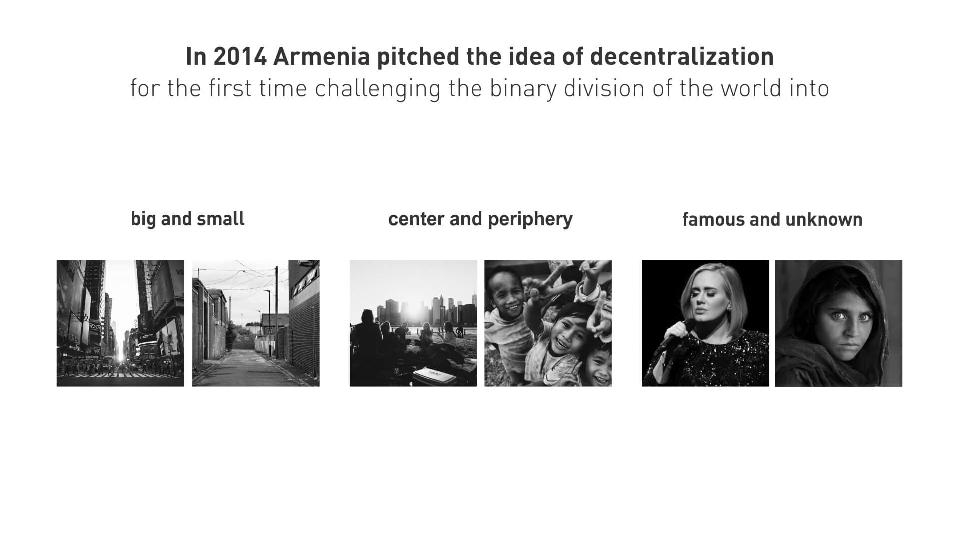 At the time of the event, the idea of decentralization was getting traction and we used it as a stepping stone to raise an important question “Where is the center and who decides who’s in it?”. The future is within our grasp and anyone who has answers should have the opportunity to be heard. We suggested that the whole idea of “a tech center” should be reimagined. The idea of rethinking the center resonated with many people. The concept and its visualization ended up being very current, easily accepted and loved. It broke the traditions of tech event branding, made it a lot more human, emotional, beautiful in its simplicity. For the duration of the event, we truly moved “the center” to Yerevan.